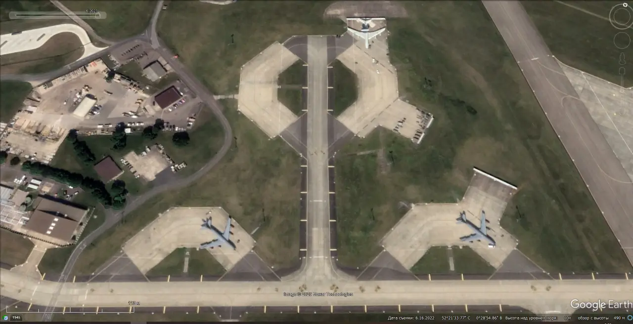 Спутниковый снимок Google Earth: БПЛА над взлётно-посадочной полосой авиабазы Крич
