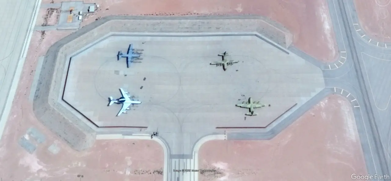 Спутниковый снимок Google Earth: самолёты Lockheed U-2S Dragon Lady и Boeing E-3G Sentry на авиабазе Аль-Дафра