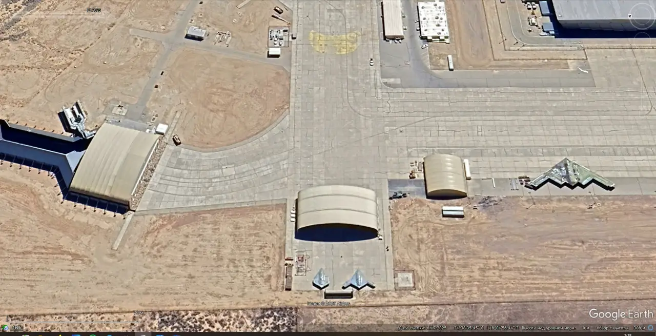 Самый свежий снимок RQ-170 Sentinel датирован августом 2025 года. На фотографии хорошо видно, что беспилотник практически полностью повторяет схему дальнего бомбардировщика Northrop Grumman B-2A Spirit.