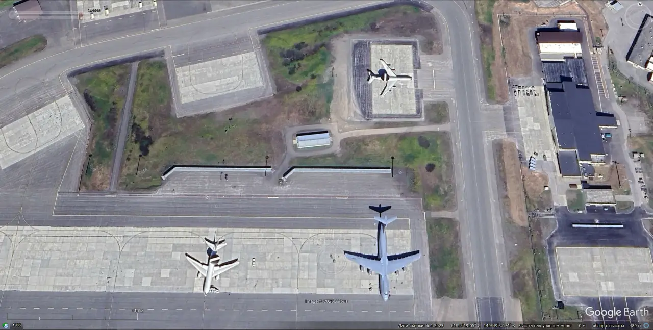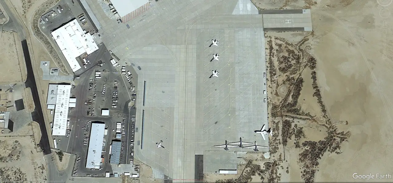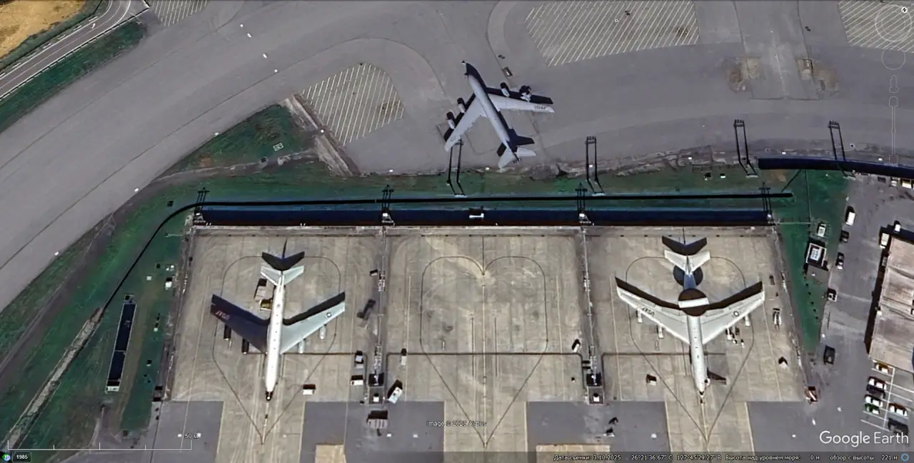Спутниковый снимок Google Earth: самолёты Lockheed U-2S Dragon Lady на авиабазе Бил