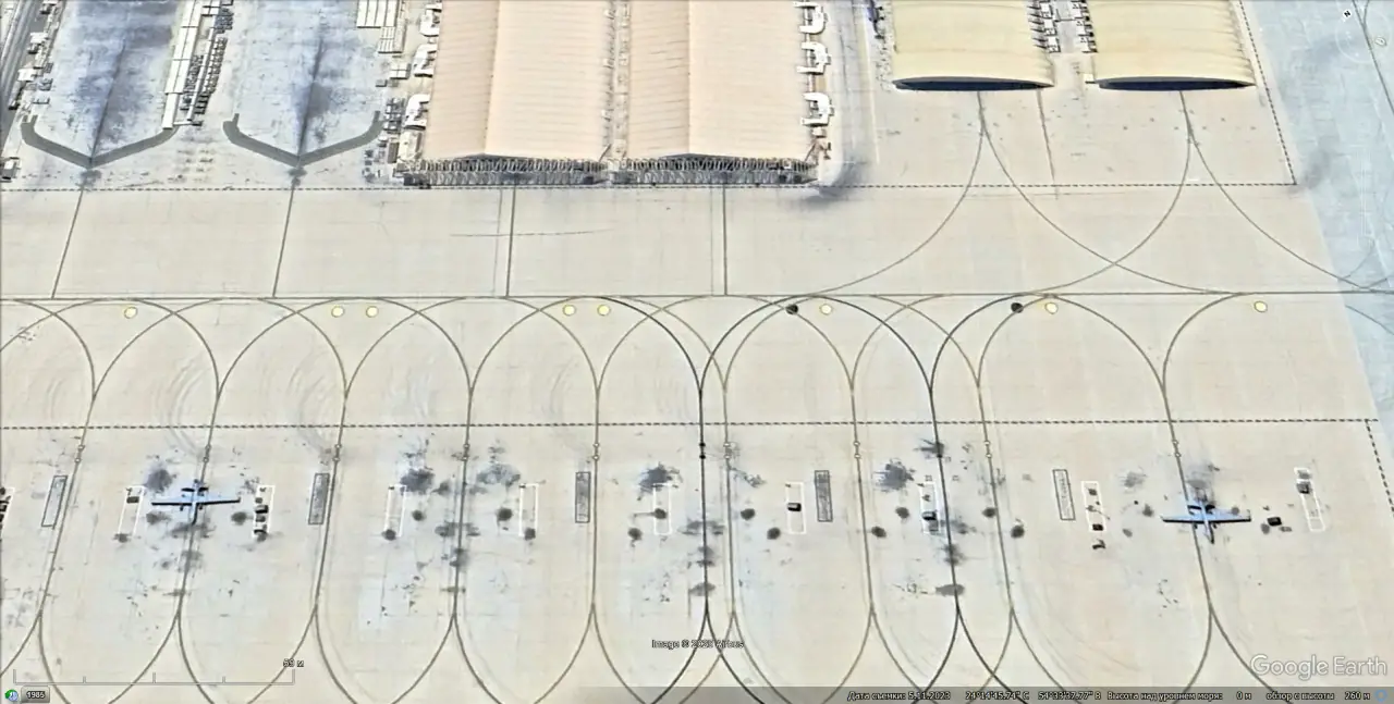 Спутниковый снимок Google Earth: БПЛА General Atomics MQ-9А Reaper на авиабазе Аль-Дафра