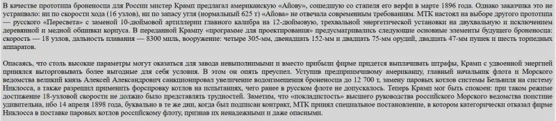 И в тот же день, 21 марта 1898 г., генерал-адмирал распорядился предложить спроектировать эскадренный броненосец для Дальнего Востока одному американскому кораблестроителю – небезызвестному Чарльзу Крампу.