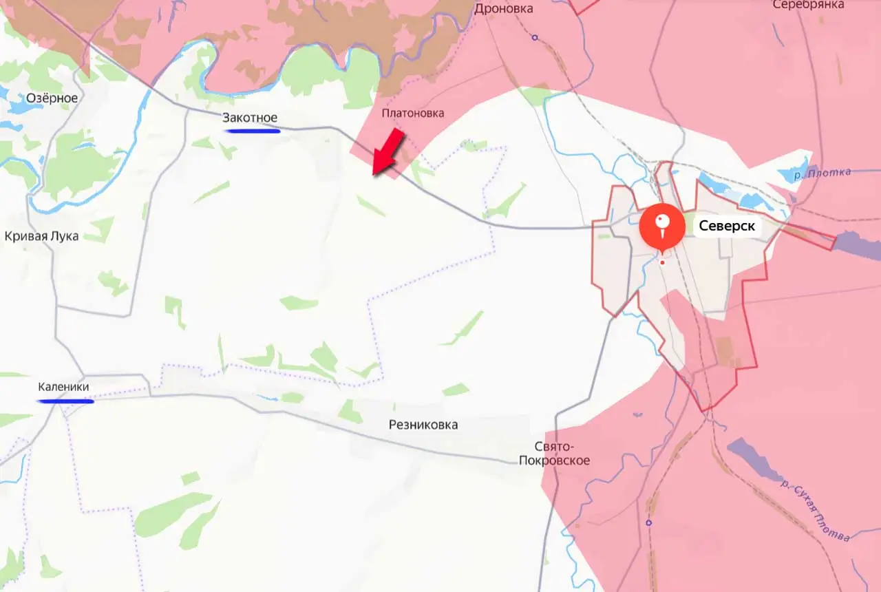 В результате наступательных действий к северо-западу от города российские штурмовые группы перерезали автомобильную дорогу Северск – Красный Лиман – Славянск ещё на одном участке. Расположен этот участок южнее ранее освобождённой Платоновки.