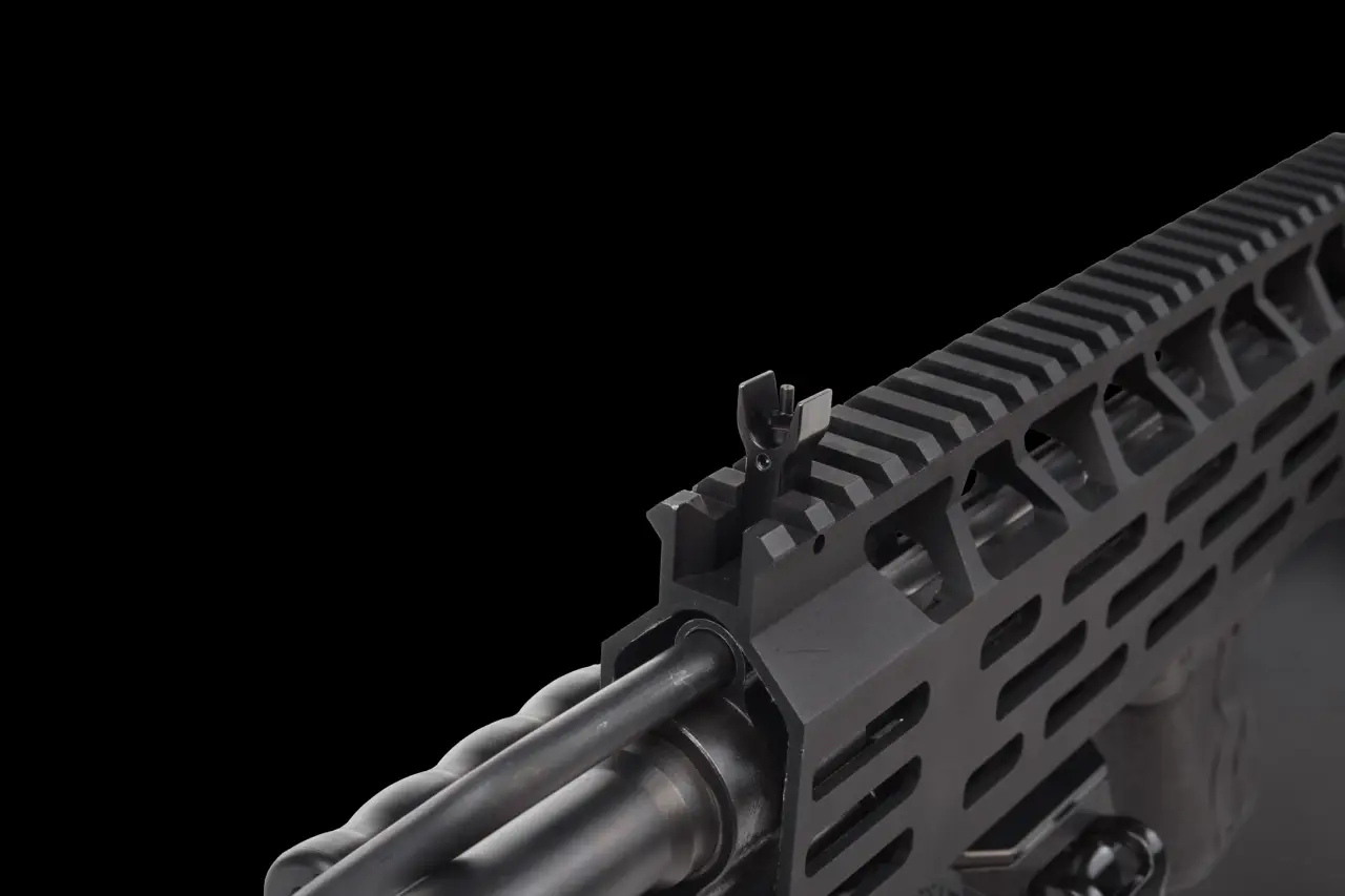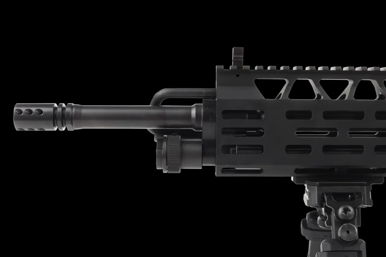 Используется автоматика на основе отвода пороховых газов. Газовый узел, включающий регулятор, находится под стволом. В ранних рекламных материалах упоминался 4-позиционный регулятор, но теперь пишут об 11 режимах. За откат затвора отвечает поршень, вероятно, выполненный заодно с затворной рамой. С рамой взаимодействует боковая рукоятка взведения, во время стрельбы остающаяся неподвижной.