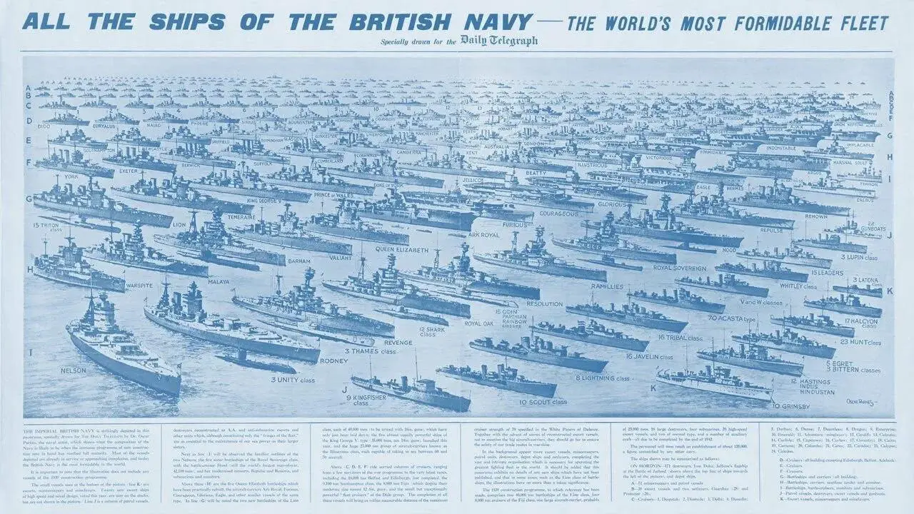 Вторую мировую войну британские судостроители проиграли вчистую: построив 5 линкоров типа «Кинг Джордж V» — самых слабых среди всех «одноклассников», и «Вэнгард», с башнями главного калибра, изготовленными в 1916 году и ржавевшими всё это время где-то на складах. Впрочем, он вошёл в строй уже после войны. Американцы за это время ввели в строй дюжину линкоров (две «Аляски» формально считались линейными крейсерами, но по факту...), превосходивших британские на голову! Могли построить больше, но зачем? Основной ударной силой американского флота во Второй мировой войне стали авианосцы, и здесь янки сделали лайми как стоячих: с 1942 по 1944 год в строй вступило 23 авианосца типа «Эссекс», ещё один вошёл в строй уже после войны, а два не стали достраивать — вместо них построили три авианосца типа «Мидуэй», несущих по 137 самолётов... А ведь были ещё эскортные авианосцы типа «Касабланка», коих наклепали полсотни за один год!