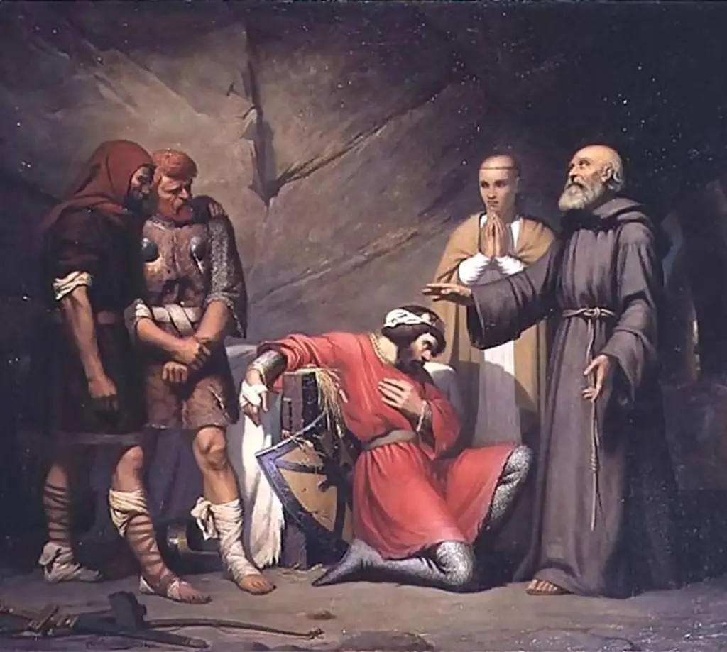 Далее: что объединяет персонажей легенд о спящем короле и суровых властителей, отправлявшихся каяться за содеянное в Палестину? Принадлежность к военной корпорации – путь меча, трансформировавшийся в подвиг молитвы.