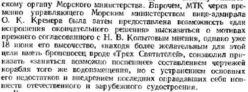 Все дело в том, что между эскизным проектом, каковой обычно представляется на первоначальное рассмотрение, и чертежами, спецификациями, по которым возможно начать заказывать металл и строить корабль, пролегает пропасть длиной в месяцы. И то же самое касалось проектов Балтийского завода и Санкт-Петербургского порта – с учетом разрешения менять теоретический чертеж требовалось проектировать во многом новый корабль, чертежи на который никак не могли быть готовы в мае 1898 г.