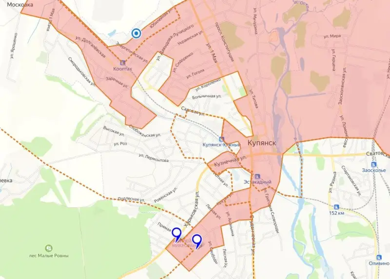 Тем временем в Купянске противник продолжает попытки потеснить наши войска. В результате серии атак ВСУ удалось зацепиться за улицу Харьковская. Командование явно поставило перед ВСУ задачу полностью вернуть контроль над этой улицей, так как к западу от Купянска она переходит (ясно уже из названия) в дорогу на областной центр, Харьков, которая ранее являлась главной артерией снабжения купянского гарнизона.