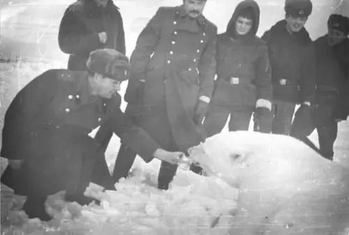 В эту зимовку всё шло тем же путём-дорогой. Только вот как чёрт из табакерки – появился целый дивизион (хоть и по документам, но уже было на кого переводить ответственность). Во второй половине декабря 1990 года толщина льда достигла в районе стоянки катеров 60 см, что уже обеспечивало зимовку до весны следующего года, катера вмёрзли в лёд и уже втянулись в стоянку. Температура воды в этот период редко поднимается до -1 градуса, обычно находится в интервале минус 3-2 градусов. Температура воздуха в декабре находится обычно в пределах минус 15-20 градусов, то есть не очень холодно по меркам Чукотки. А вот снега может быть уже и полтора, и два метра.