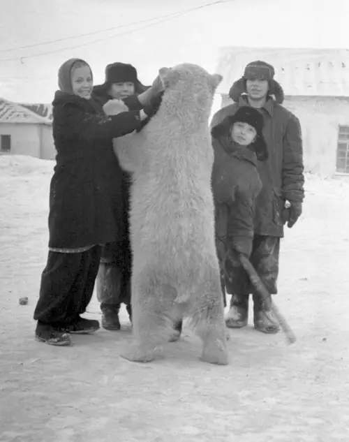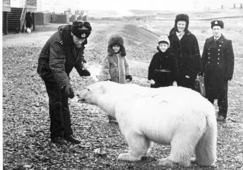На первых порах (примерно полдня-день) журналиста из передачи «В мире животных» встречали с распростёртыми объятиями. Но не долго музыка играла… Наши чукотские начальники давно не видели столичных грандов, им и в голову не приходило, что подать сюда-туда вертолёт-самолёт, как московское такси, гранд будет требовать настырно, даже нахально, невзирая на обстановку и погоду, да ещё будет грозить втоптать в пыль, если чего не так и не быстро…