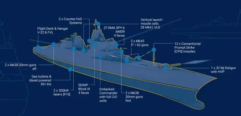 Новый план по созданию «линкора» заменит программу ВМС по созданию эсминцев нового поколения DDG(X), но будет опираться на уже проделанную работу над этой концепцией.