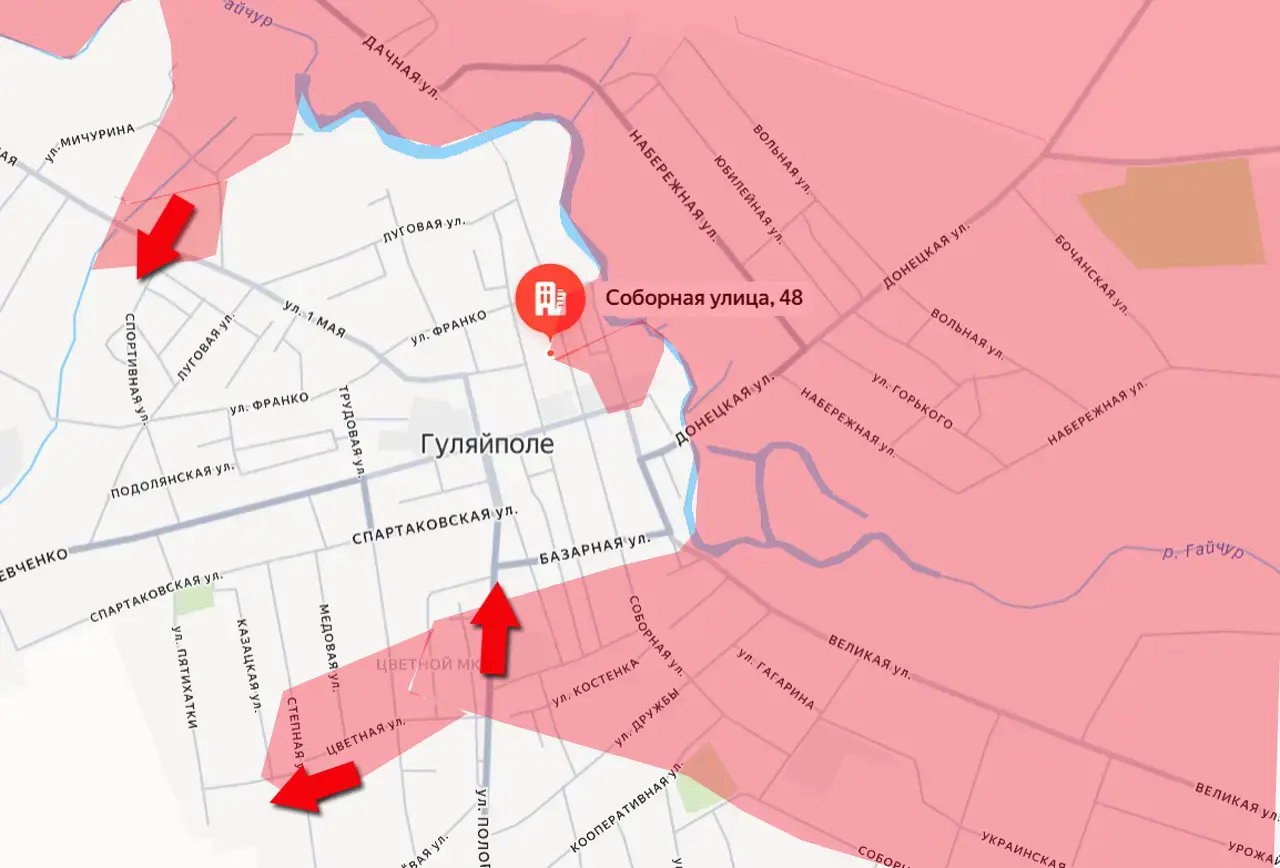 На северо-западе армия России взяла под контроль часть улицы 1 Мая, приблизившись к западной окраине Гуляйполя.
