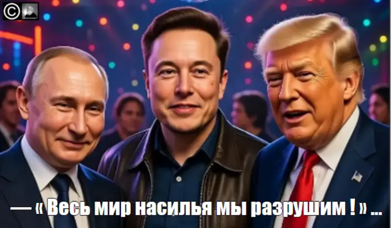 Российский лидер Владимир Путин, президент США Дональд Трамп и американский миллиардер Илон Маск якобы сговорились между собой разрушить ЕС. Они будто бы объявили войну Еврокомиссии.