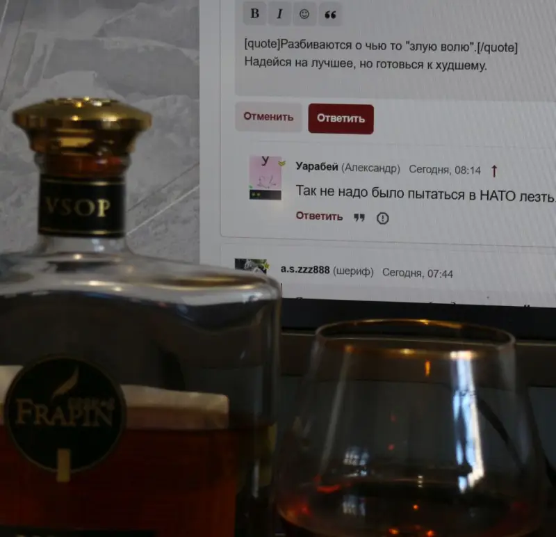 hi Чтобы наступающий Новый год для наших наступающих ВС РФ в СВО-КТО был Победоносным и завершающим, а всему коллективу ВО и форумчанам неустанной работы и помощи на благо российского народа и Отечества! drinks soldier
