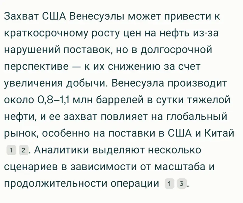 Между тем приходят сообщения, что в Венесуэле объявлена мобилизация, армия выведена на улицы, военные берут под контроль основные дороги, объекты критической инфраструктуры. Контроль над ситуацией пока сохраняется, хотя есть информация о гибели министра обороны Венесуэлы Владимира Падрино Лопеса, убитого в результате американского удара по его дому в Каракасе. Ждем выступления Мадуро.