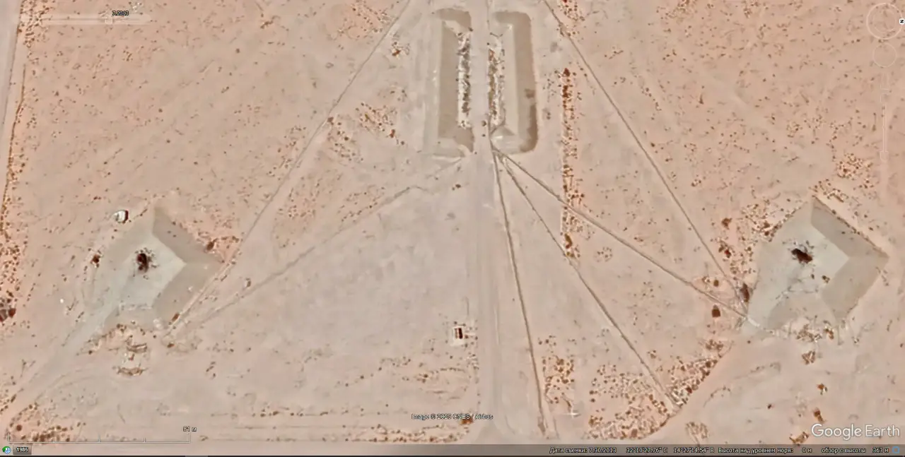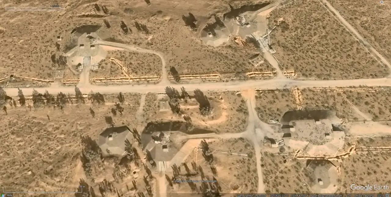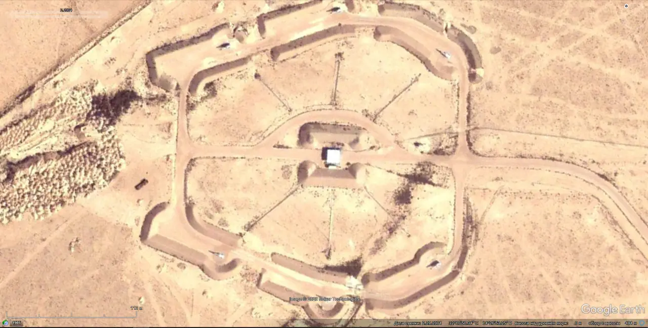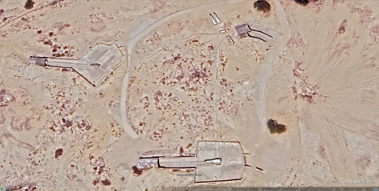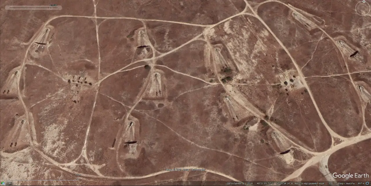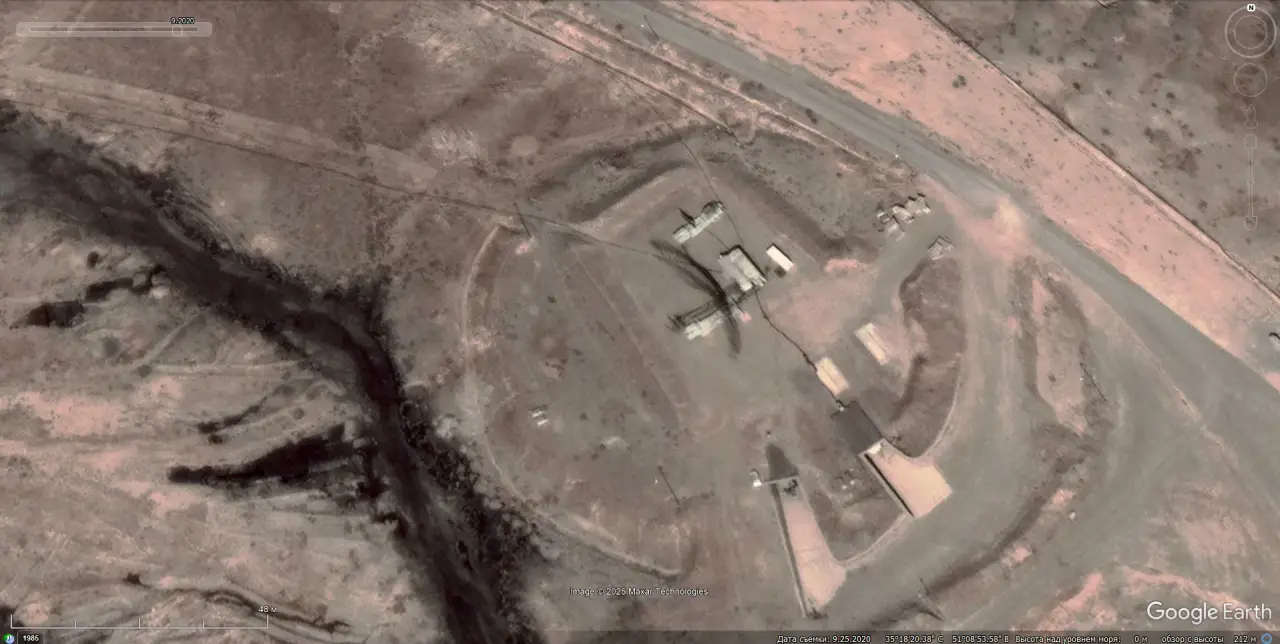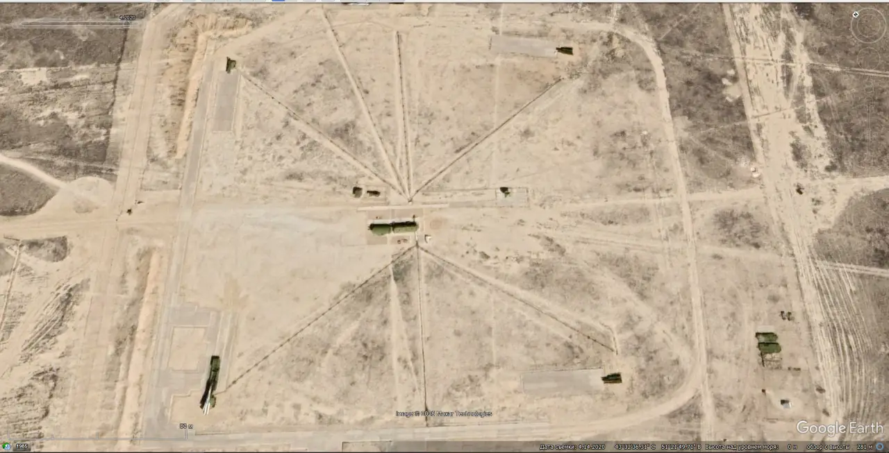 Спутниковый снимок Googlе Еаrth: позиция ЗРК С-200ВМ в 10 км юго-восточней Актау. Снимок сделан в апреле 2020 года