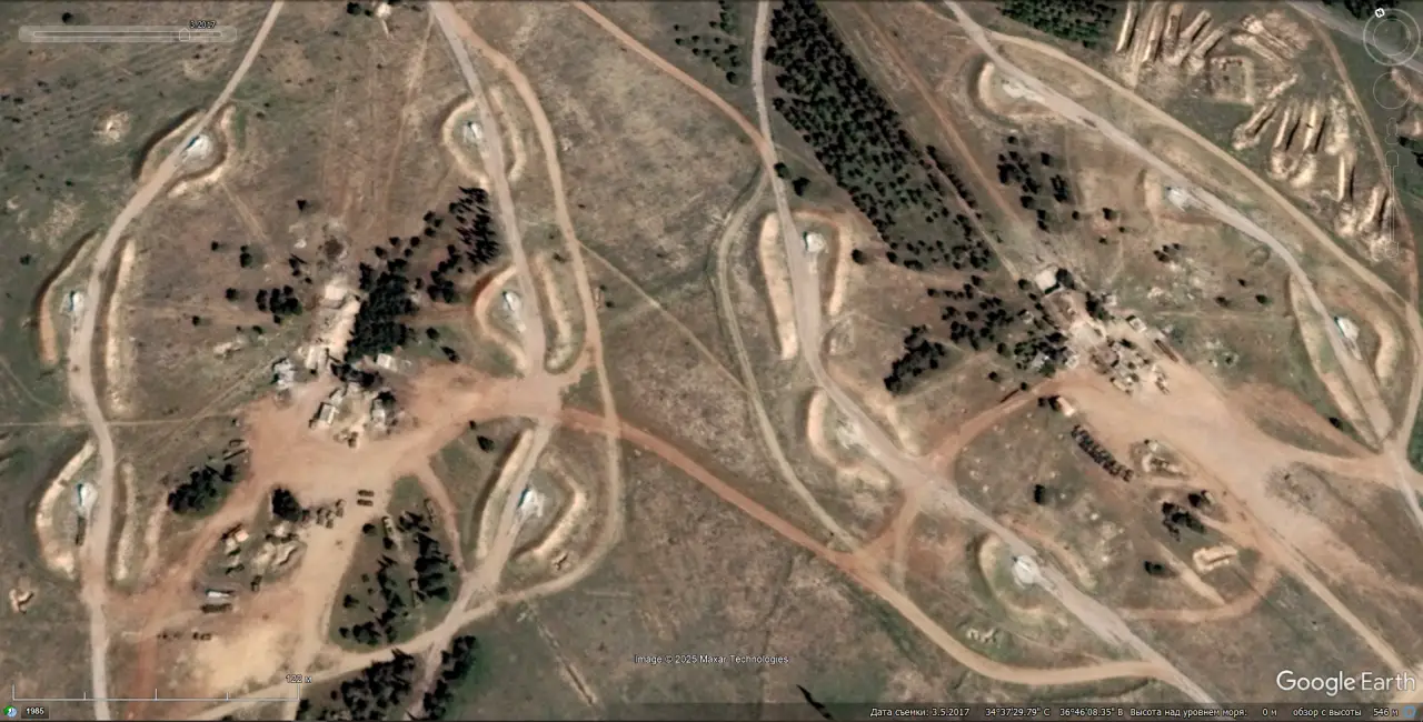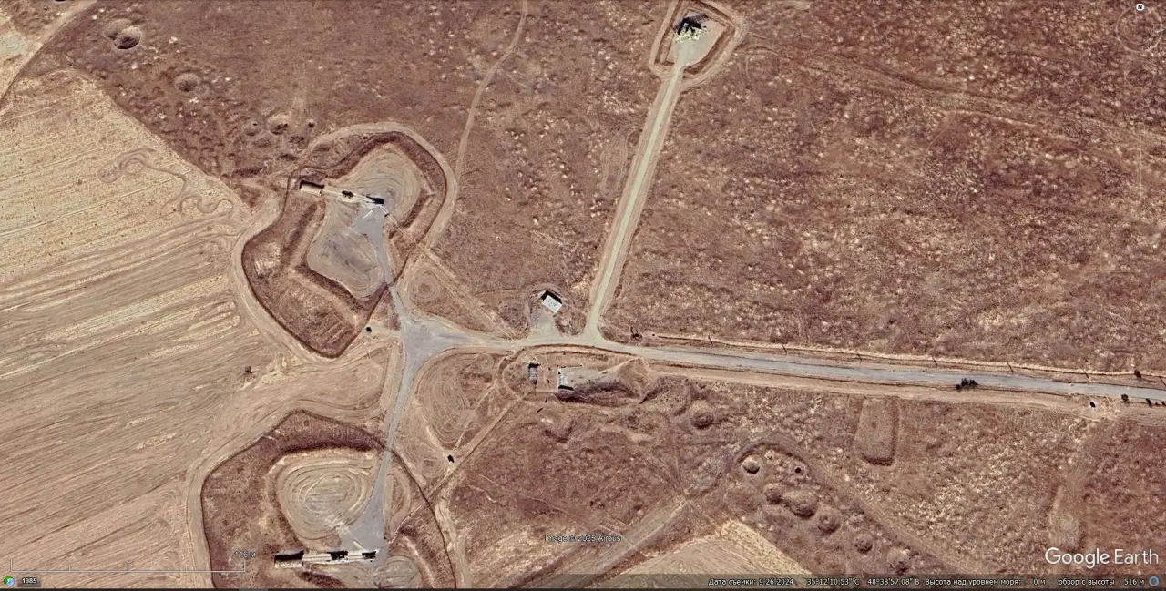 Спутниковый снимок Googlе Еаrth: позиция ЗРК С-200ВЭ в Эр-Романдане, в 10 км восточнее Дамаска. Снимок сделан в июне 2024 года