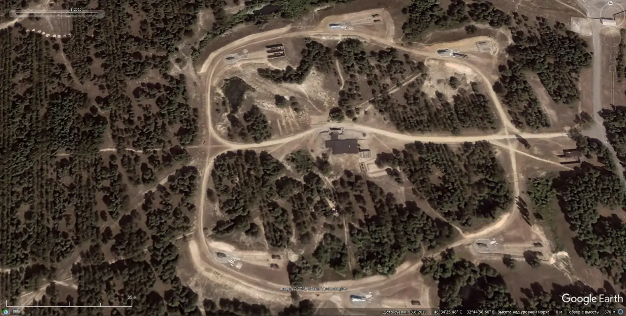 Спутниковый снимок Googlе Еаrth: позиция ЗРК С-200ВМ в 2 км юго-восточней города Алешки. Снимок сделан в августе 2010 года