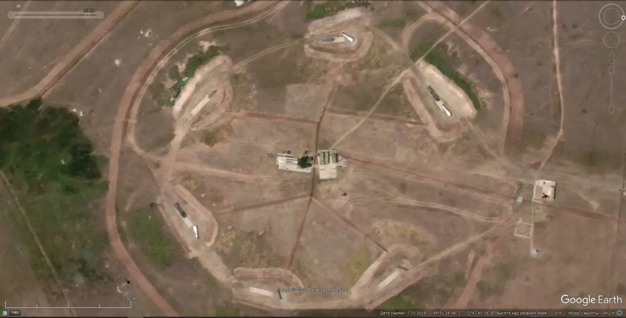 Спутниковый снимок Googlе Еаrth: позиция ЗРК С-200ВМ вод Карагандой. Снимок сделан в июле 2019 года