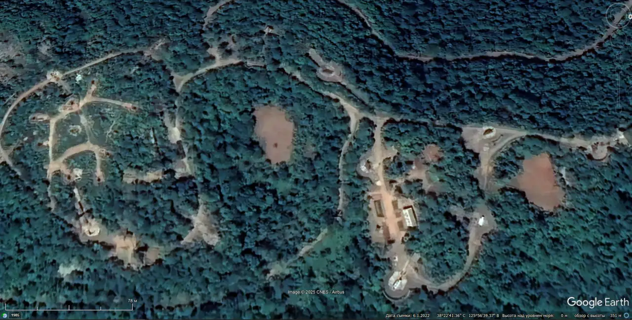 Спутниковый снимок Googlе Еаrth: позиции ЗРК С-200ВЭ в 25 км северней порта Вонсан. Снимок сделан в апреле 2020 года