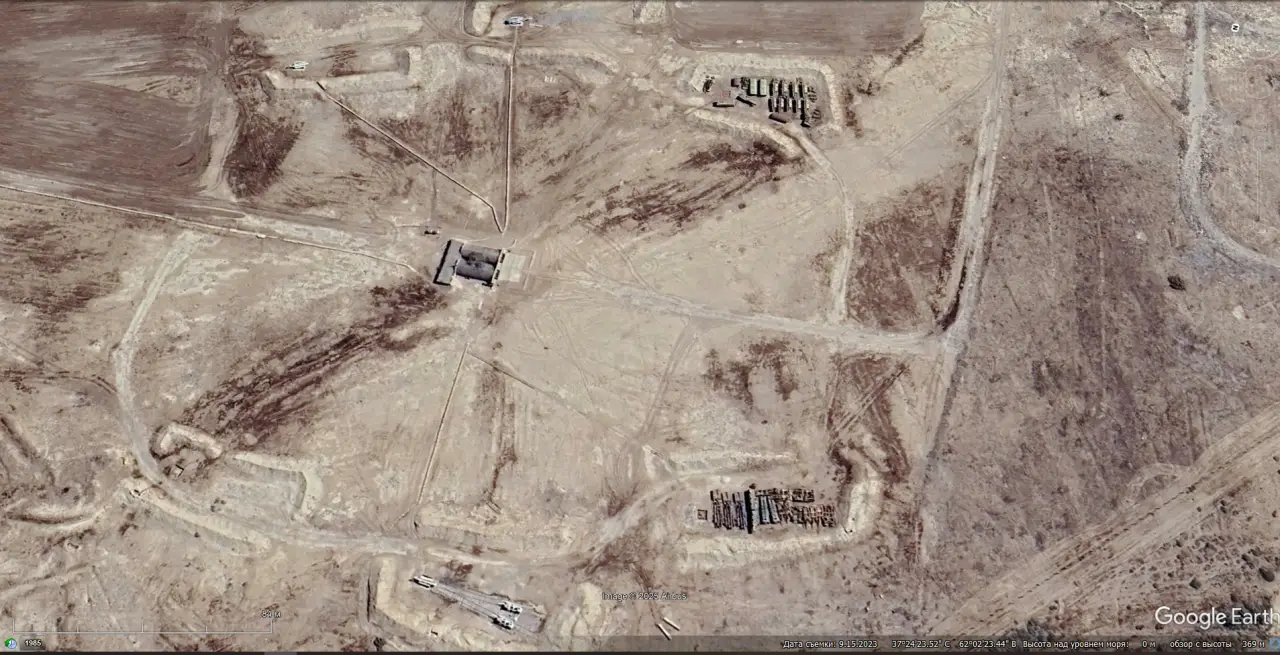 Спутниковый снимок Googlе Еаrth: позиция ЗРК С-200ВМ в 20 км юго-восточней города Мары. Снимок сделан в сентябре 2023 года