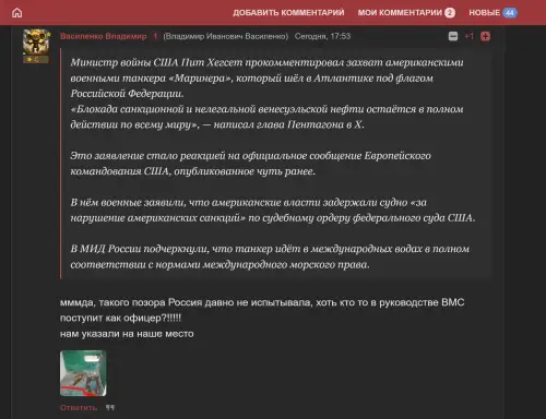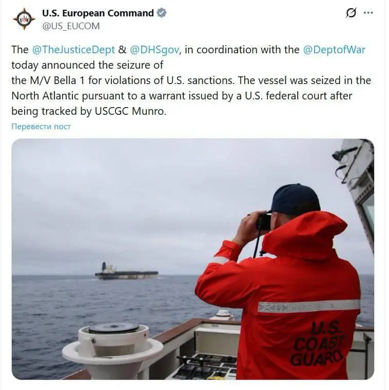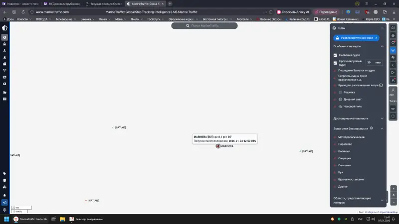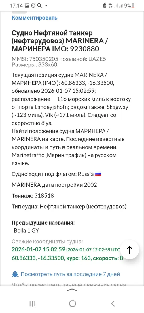 Напомним, что ранее американское издание WSJ опубликовало материал, в котором говорится, что командование ВМФ России направило в северную Атлантику подводную лодку и как минимум один надводный корабль, которые должны были «встретить» для обеспечения безопасности танкер Marinera. Российские официальные лица эту американскую публикацию не прокомментировали.