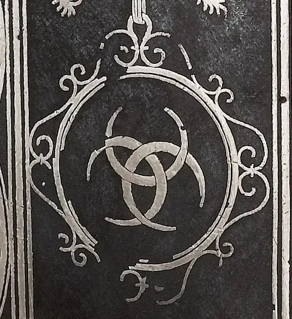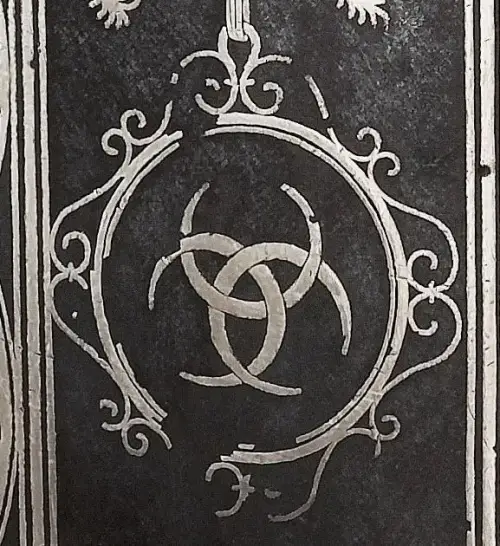 Три переплетённых полумесяца в украшениях доспеха повторяются несколько раз и явным образом указывают на род Валуа. В частности, в гербе графства Ангулем в составе герцогства Валуа, помимо трех золотых лилий и серебряного пояса, на каждой из трех его подвесок была изображена красная луна. Музей армии. Париж