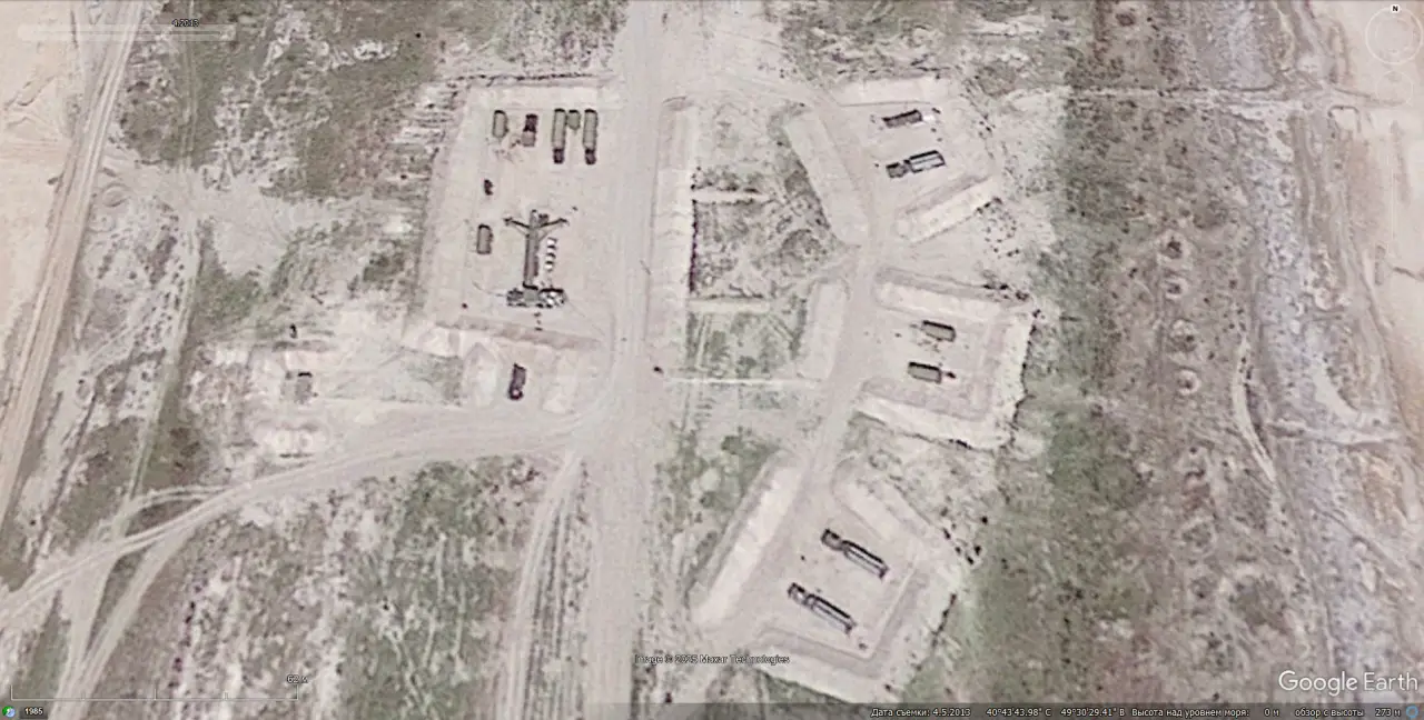 Спутниковый снимок Googlе Еarth: ЗРС С-300ПС юго-западней Алматы на бывшей позиции ЗРК С-200ВМ. Снимок сделан в мае 2023 года