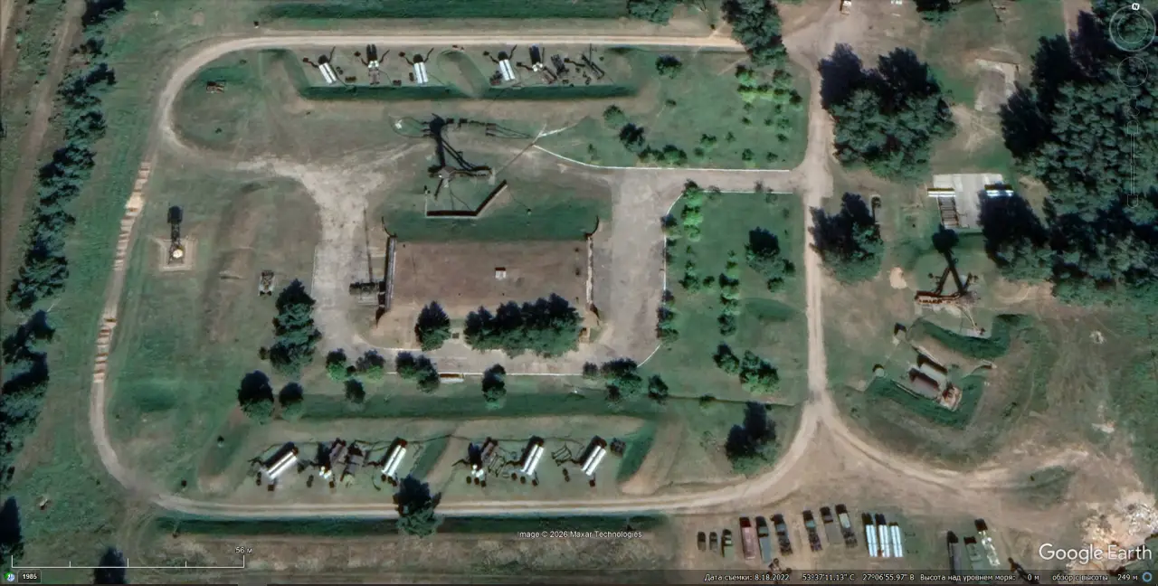 Спутниковый снимок Googlе Еarth: позиция ЗРС С-300ПТ в 40 км юго-западней Минска. Снимок сделан в августе 2022 года