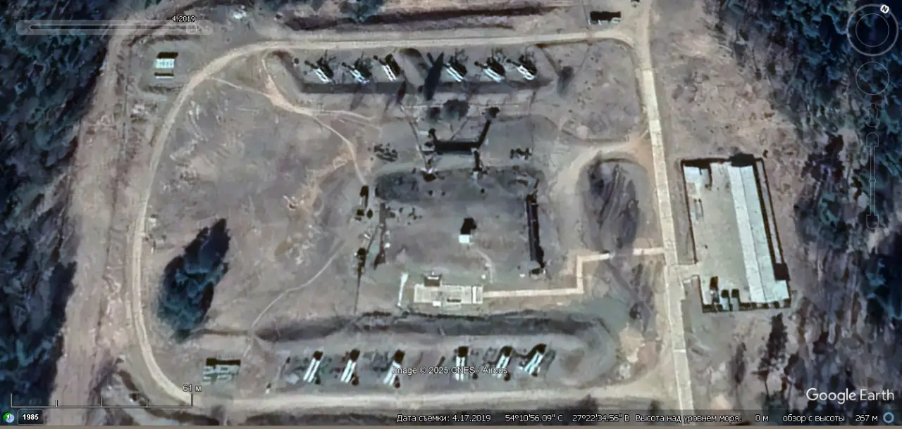 Спутниковый снимок Googlе Еarth: позиция ЗРС С-300ПТ северней Минска. Снимок сделан в апреле 2019 года