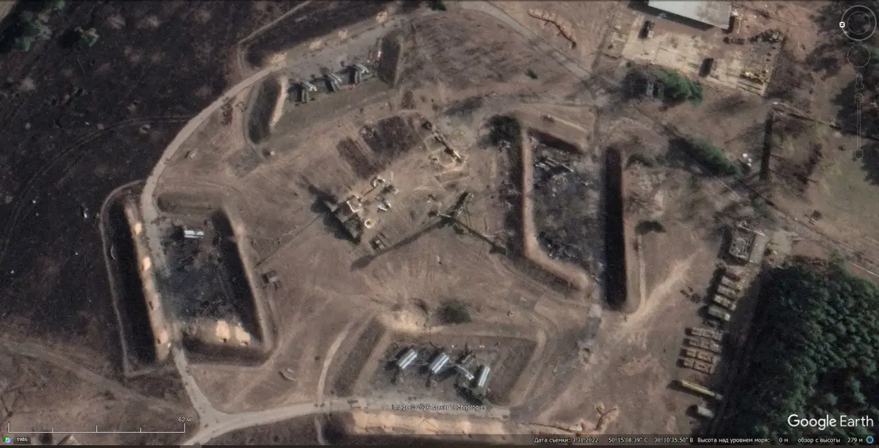 Спутниковый снимок Googlе Еarth: позиция ЗРС С-300ПТ в 8 км западней авиабазы Васильков. Снимок сделан в марте 2022 года