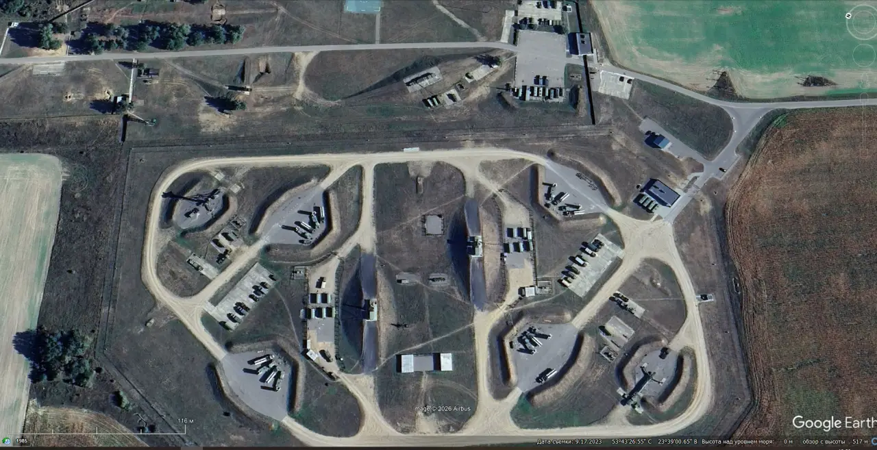 Спутниковый снимок Googlе Еarth: позиция ЗРС С-300ПС под Гродно. Снимок сделан в сентябре 2023 года