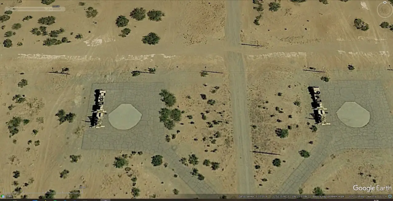 Спутниковый снимок Google Earth: позиция ЗРК MIM-104 Patriot PAC-2 в 6 км южней города Каратея. Снимок сделан в августе 2025 года