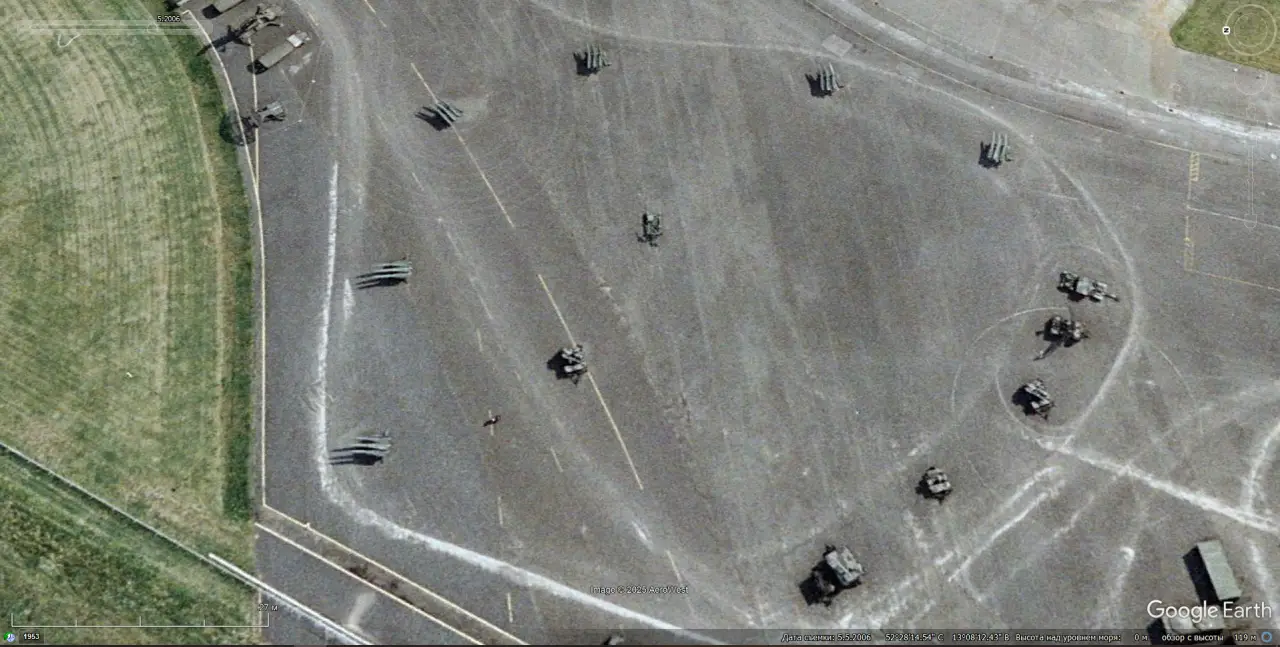 Спутниковый снимок Google Earth: элементы ЗРК MIM-23 Hawk в Военно-историческом музее — лётное поле Берлин-Гатов. Снимок сделан в сентябре 2023 года