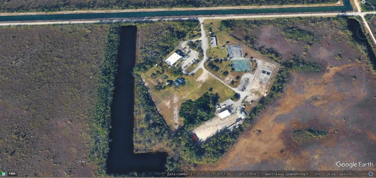 Спутниковый снимок Google Earth: бывшая позиция ЗРК MIM-14 Nike Hercules во Флориде. Снимок сделан в январе 2025 года