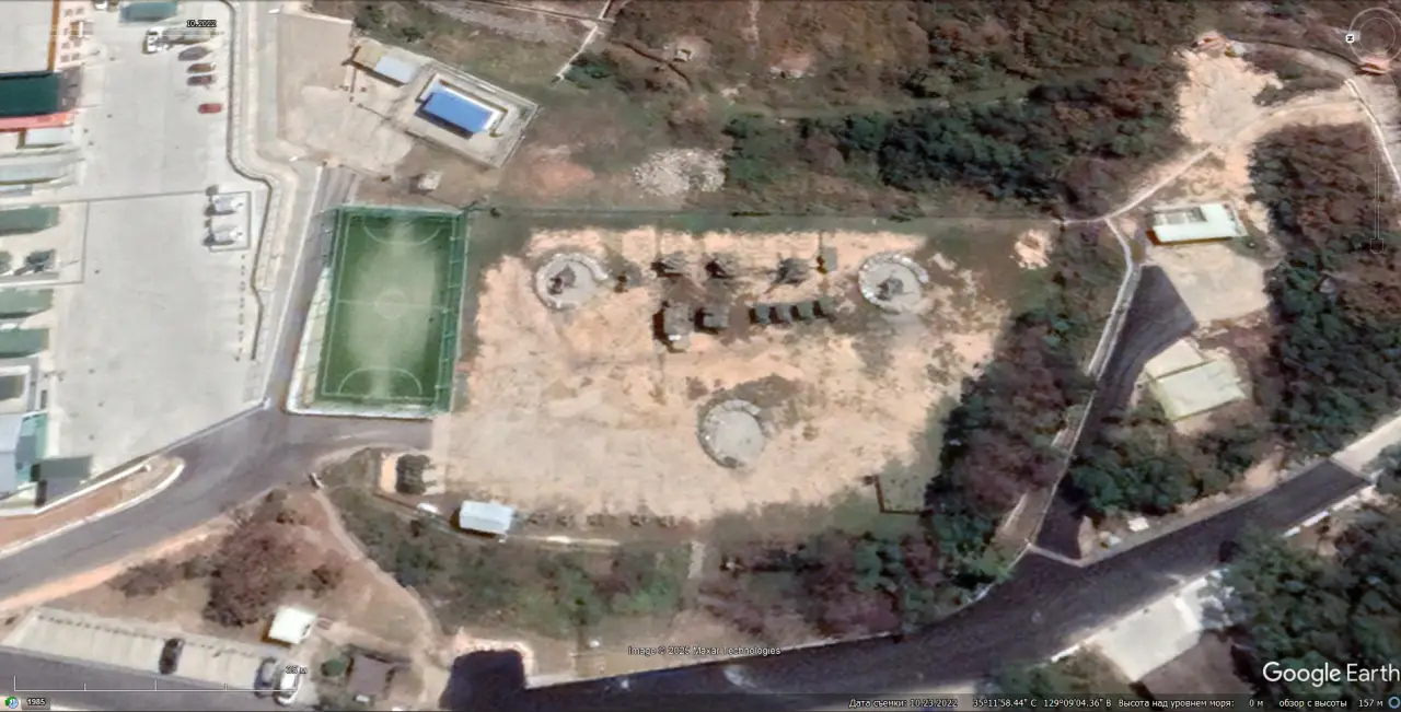 Спутниковый снимок Google Earth: позиция ЗРК MIM-23В I-Hawk восточней Пусана. Снимок сделан в октябре 2022 года