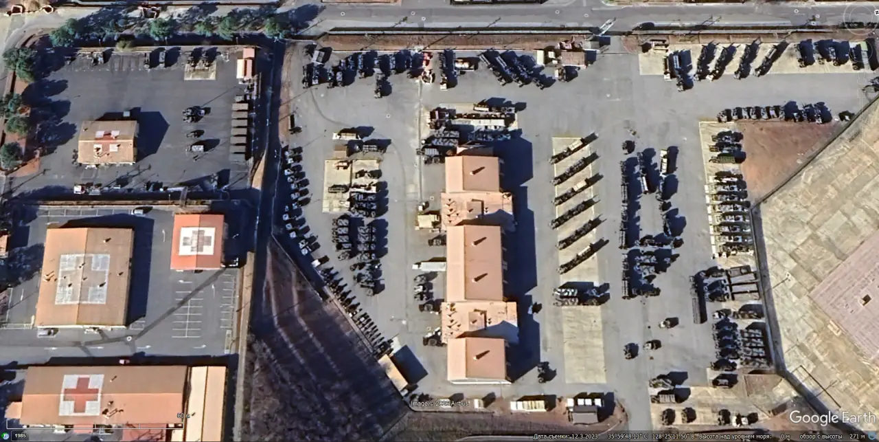 Спутниковый снимок Google Earth: элементы ЗРК Patriot хранящиеся на военной базе Форт-Блисс. Снимок сделан в феврале 2024 года