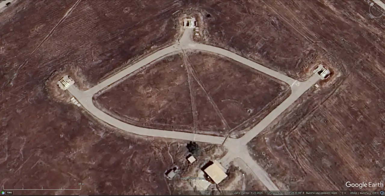 Спутниковый снимок Google Earth: позиция ЗРК MIM-14 Nike Hercules юго-западней города Датча. Снимок сделан в июле 2024 года