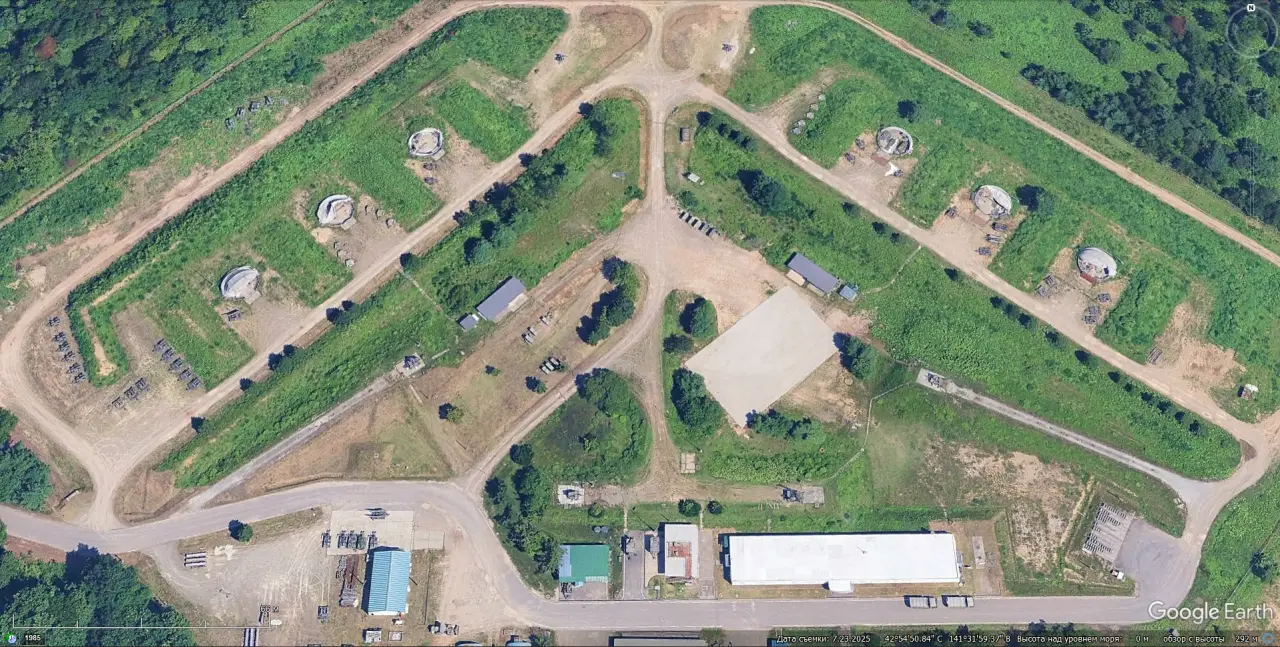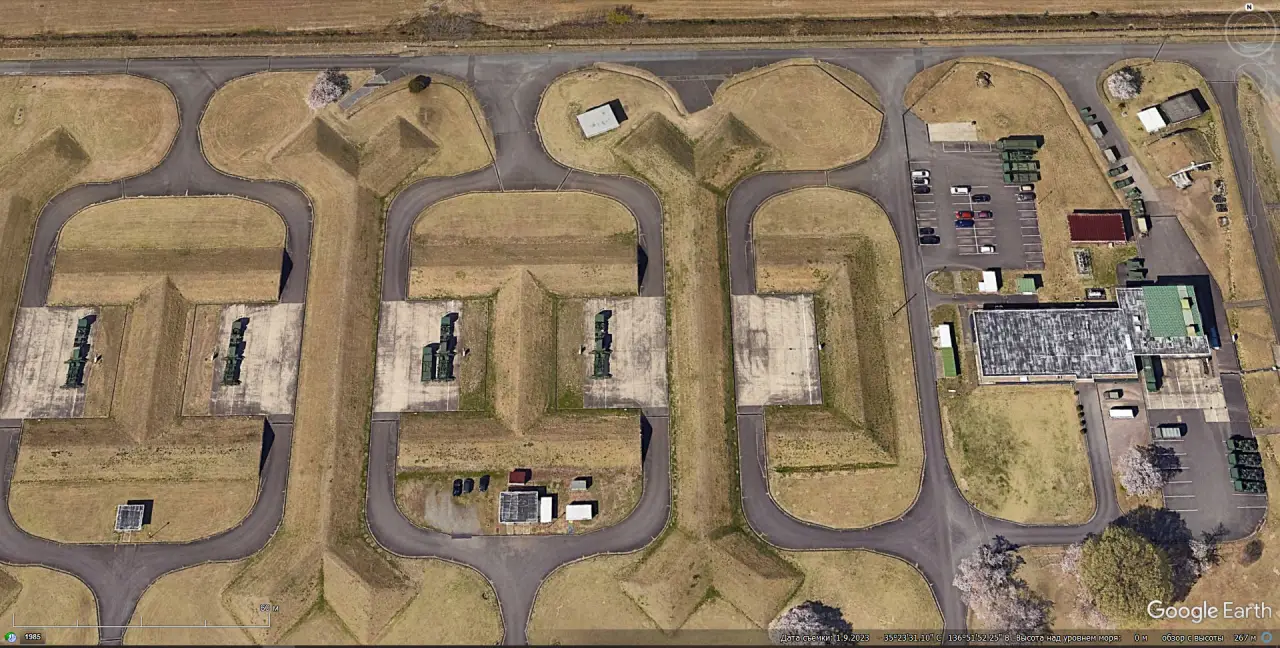 Спутниковый снимок Google Earth: позиция ЗРК Hawk Type III в окрестностях авиабазы Титосэ на острове Хоккайдо. Снимок сделан в июле 2025 года