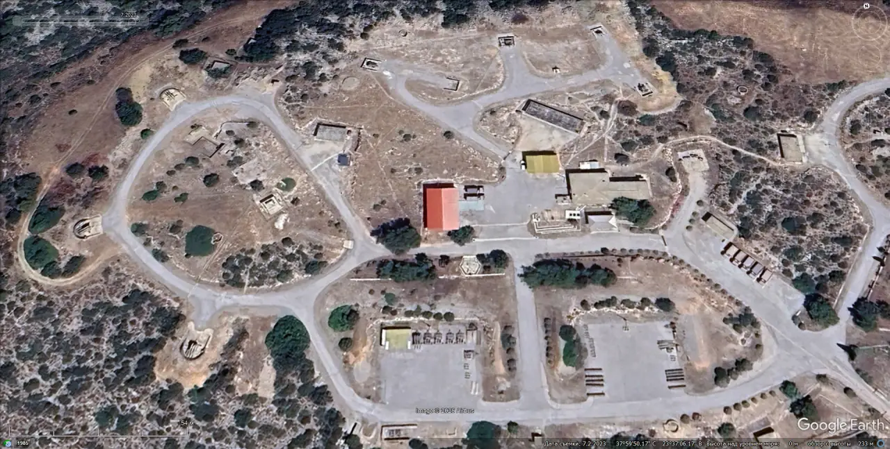Спутниковый снимок Google Earth: позиция ЗРК MIM-23 I-Hawk западней Афин. Снимок сделан в июле 2023 года