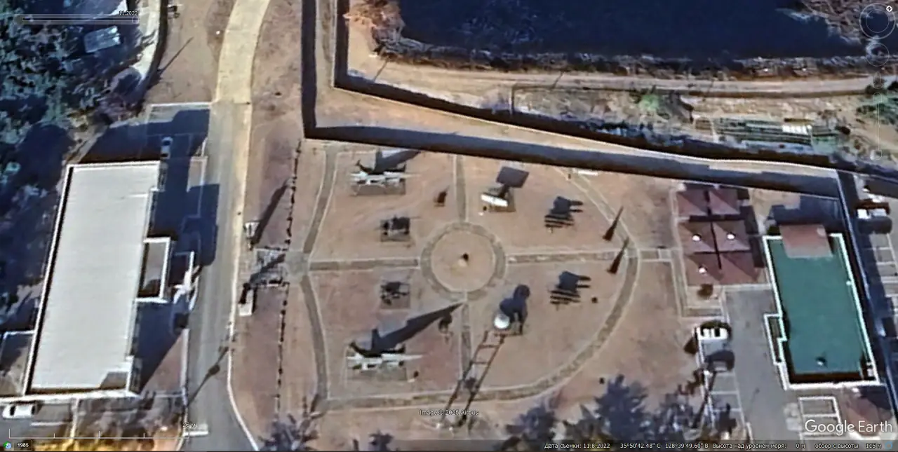 Спутниковый снимок Google Earth: позиция ЗРК MIM-23 I-Hawk в 5 км северо-восточней города Судзара. Снимок сделан в феврале 2012 года