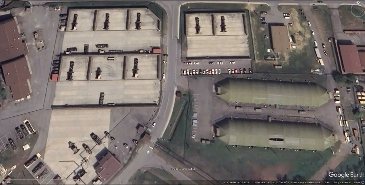 Спутниковый снимок Googlе Earth: позиция ЗРК Patriot PAC-3 MSE на авиабазе Осан. Снимок сделан в апреле 2023 года
