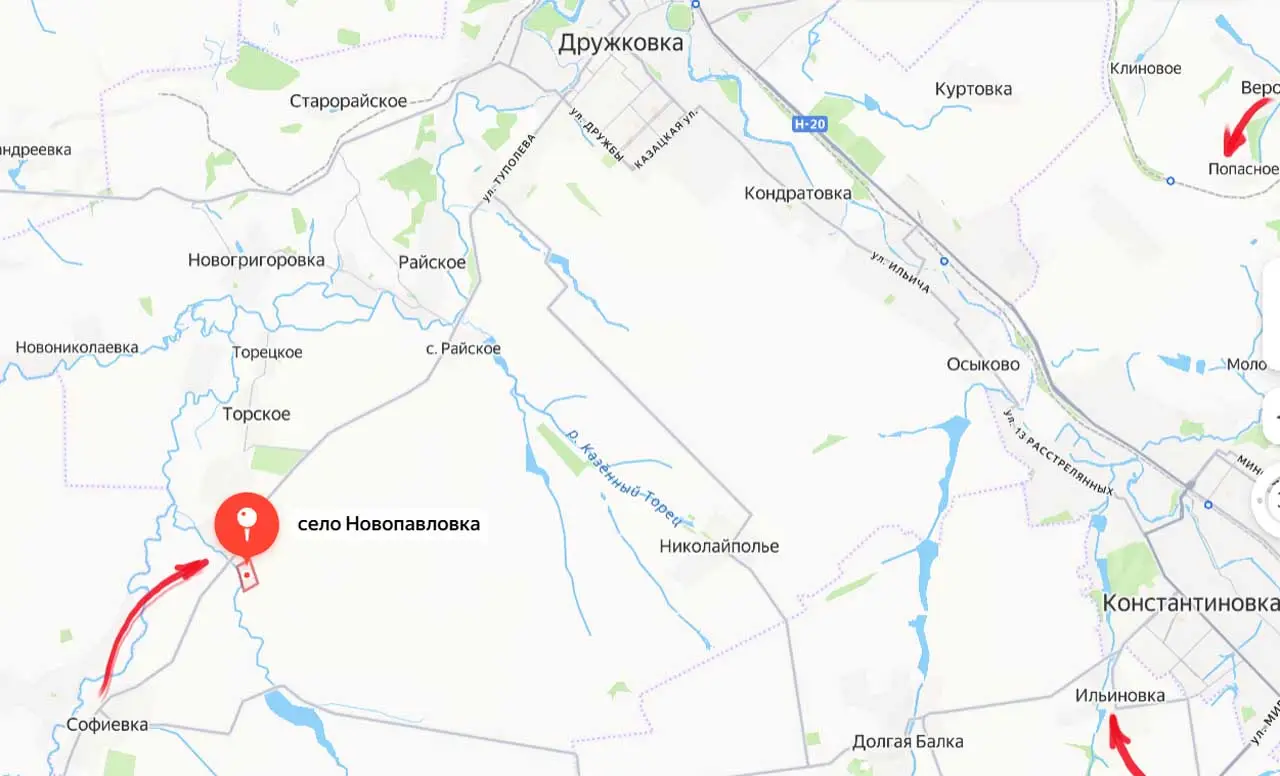 Возвращаясь к освобождению донецкой Новопавловки, отметим, что это продвижение позволяет заходить в тыл группировке ВСУ в Константиновке и одновременно – приблизиться к городу Дружковка, являющемуся фактически частью Славянско-Краматорской (Славянско-Краматорско-Дружковской) агломерации. От передовых позиций ВС РФ к северу от Новопавловки расстояние до Дружковки составляет около 8 км. По сути, это расстояние миномётного выстрела для вооружения калибра 120 мм. Примерно на том же расстоянии наши войска находятся от Дружковки в районе Веролюбовки - северо-восточнее Новопавловки.