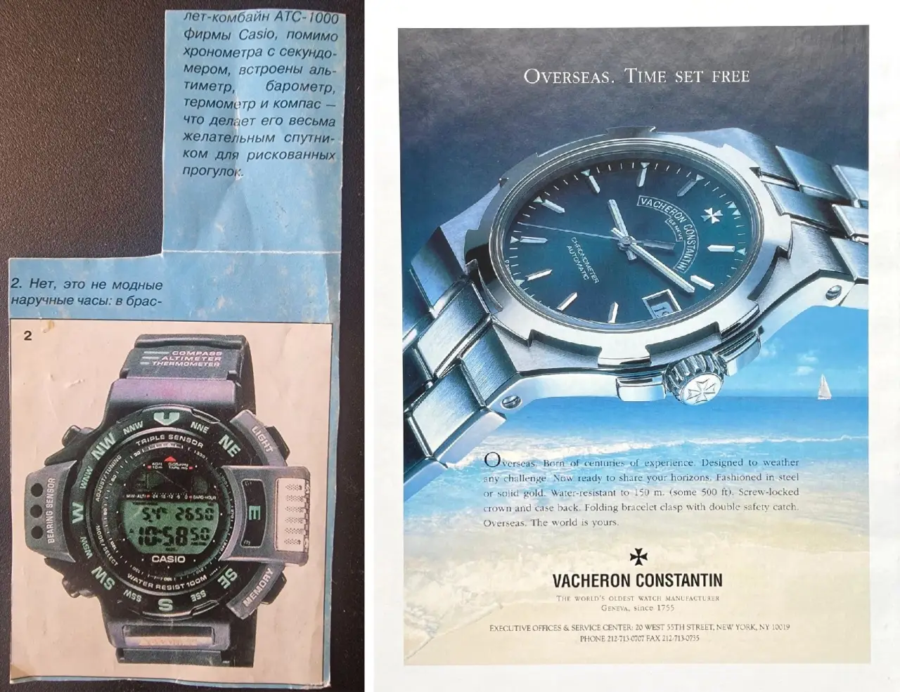 В старших классах школы, кажется, в 1994 году, в найденном на улице журнале автору очень понравились часы Casio Pro Trek, которые казались технологией пришельцев (вырезка из того журнала сохранилась до настоящего времени), а через несколько лет, уже во время учёбы в университете, в 1997 году, в каком-то журнале автору приглянулись часы Vacheron Constantin Overseas – цена там не была указана, и тогда даже представить себе было невозможно, что могут существовать часы такой стоимости.