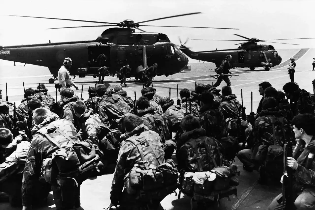 Бойцы САС на авианосце «Гермес» ждут погрузку в вертолёты
