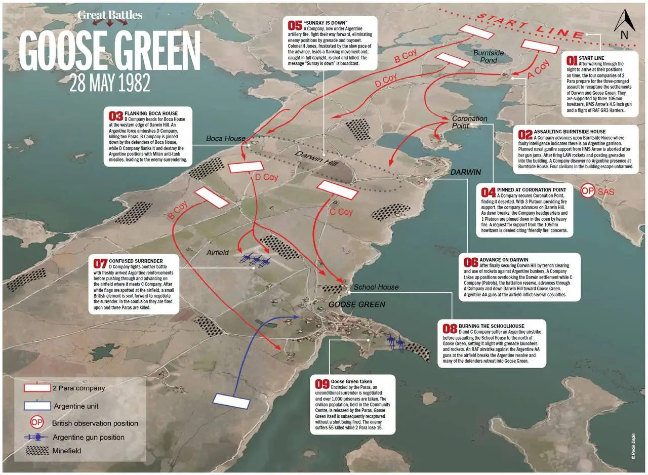 План боя у Гуз-Грин. Назвать ЭТО «великой баталией»... Немного нескромно