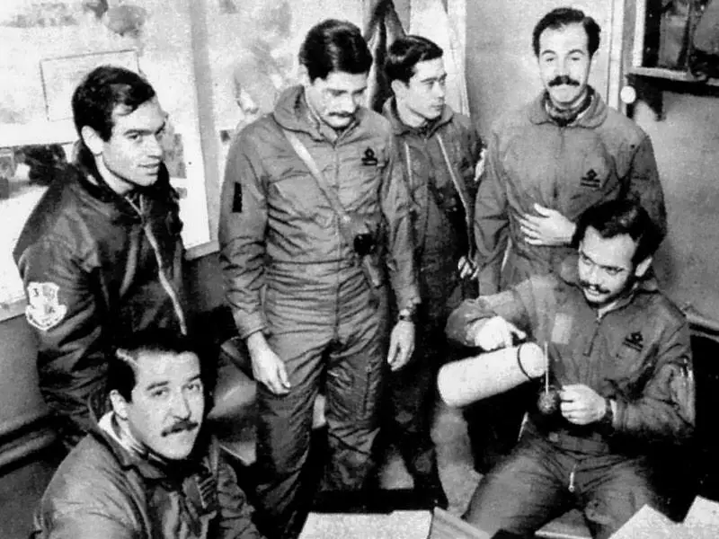 Пилоты эскадрильи "Пукара - Мальвнос", лейтенант Роберто Симбаро третий справа
