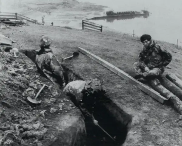 Гуркхи окапываются в заливе Сан-Карлос
