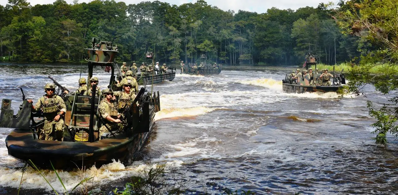 Сразу четыре катера SOC-R ВМС США в кадре. На каждом катере установлен «Миниган»