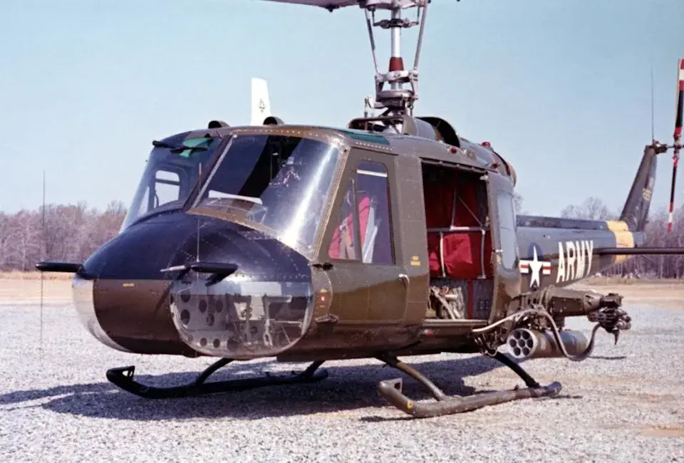 Вертолёт UH-1 армейской авиации с подвесным контейнером М18
